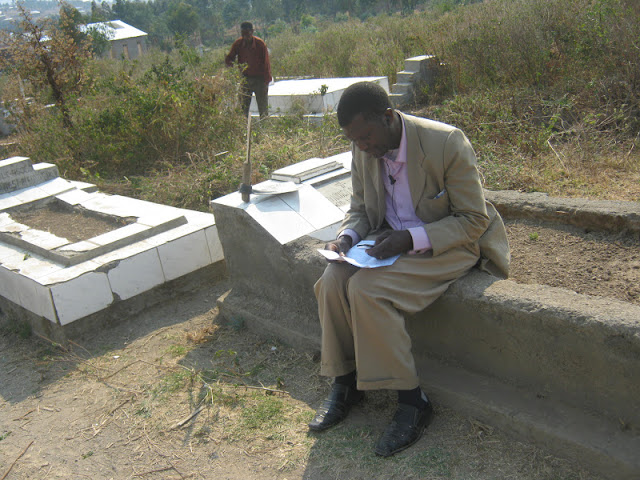 Mwandishi wa habari wa Kituo cha Redio cha Kurushia Matangazo cha Bomba FM 104.0MHz akiwajibika katika zoezi la usafishaji wa makaburi.